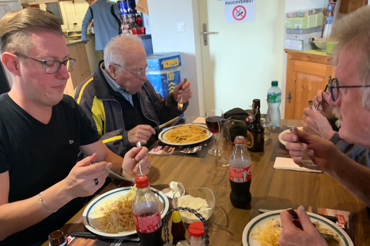 Nach dem sportlichen Teil des Tages stand das traditionelle Saisonschlussessen auf dem Programm. Das Wirteteam (Ruth Glauser und Toni Schär) zauberte zwei leckere Gerichte auf die Teller. Es gab Zunge und Geschnetzeltes, das die Anwesenden in gewohnter gemütlicher und kameradschaftlicher Atmosphäre genossen. Wie immer liess man den Abend in dieser lockeren und lustigen Gemeinschaft ausklingen.